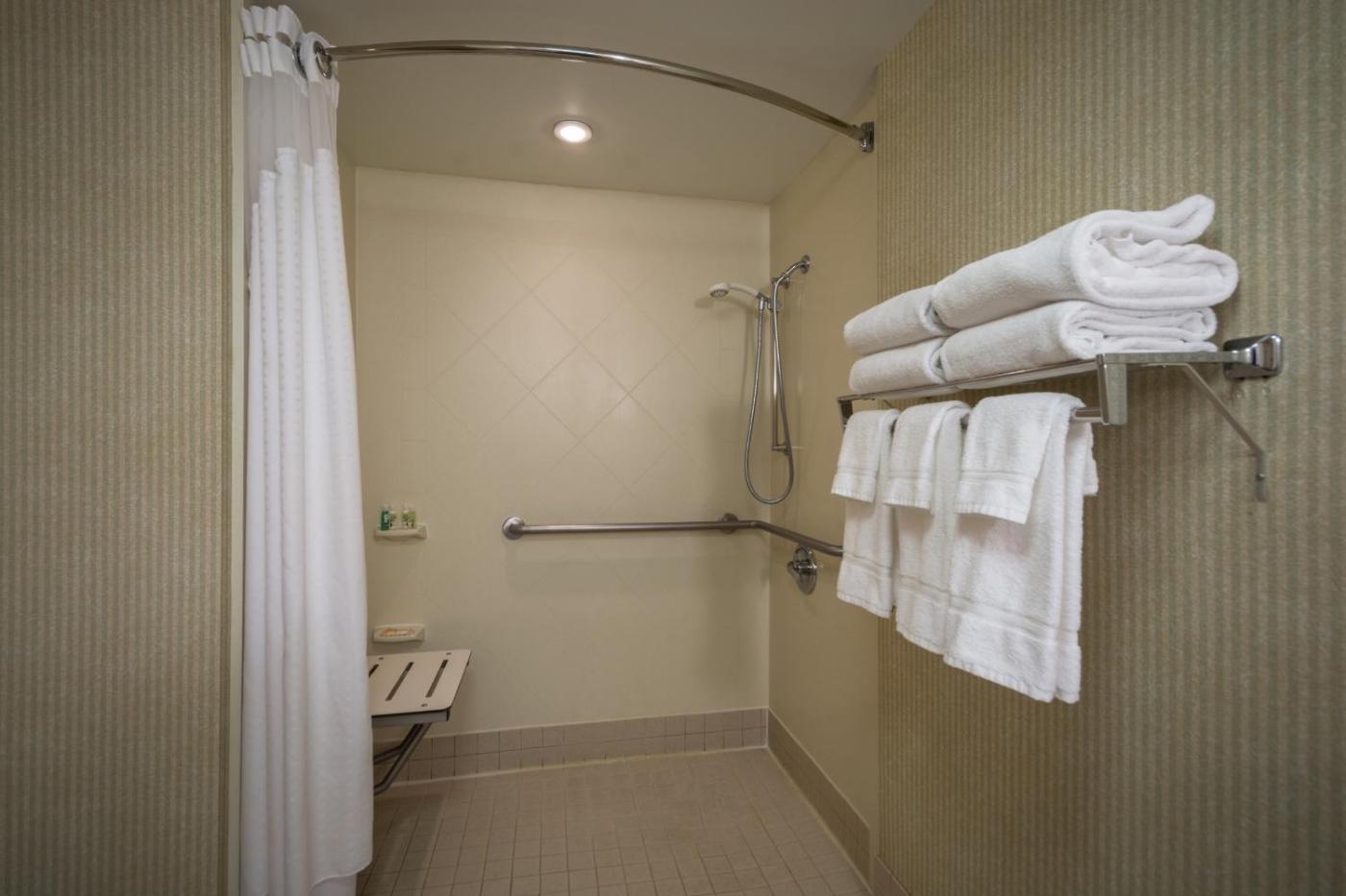 Standard Queen Room with Two Queen Beds and Mobility Accessible Roll-In Shower. The spacious double room offers air conditioning, a tea and coffee maker, as well as a private bathroom featuring a bath or a shower and a hairdryer. The double room features a wardrobe, a carpeted floor, heating and a flat-screen TV with cable channels. The unit offers 2 beds.