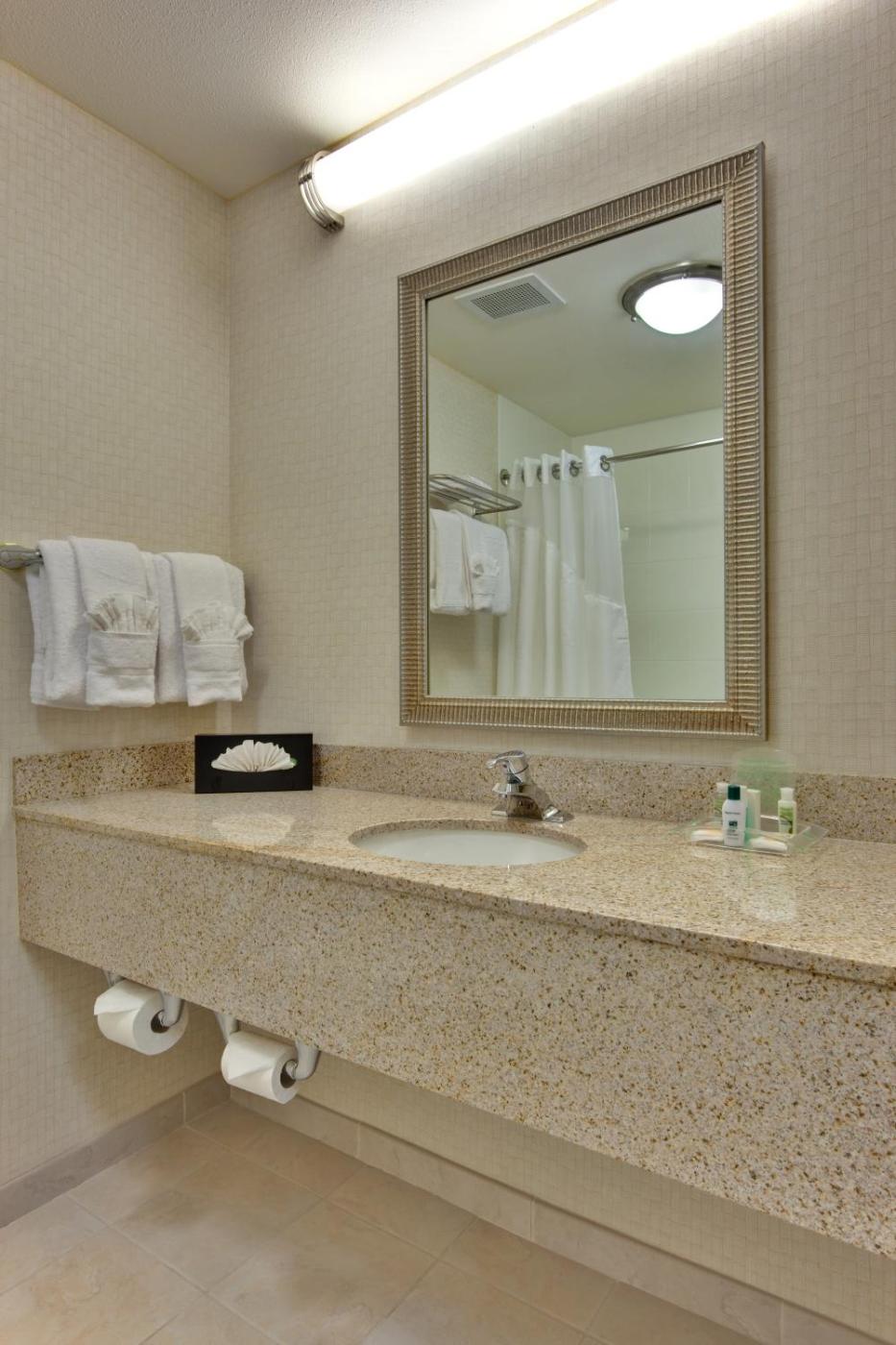 A flat-screen cable TV is provided in each guest room at Holiday Inn & Suites Bakersfield by IHG. Coffee-making facilities and an en suite bathroom with hairdryer are also included.
