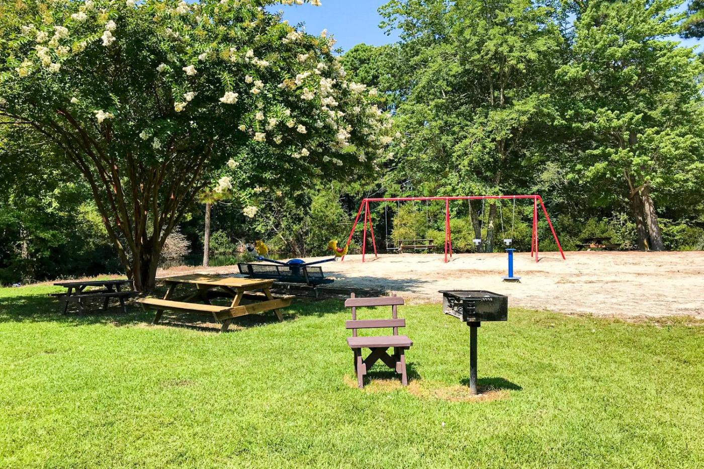 The holiday home features a childrens playground and a picnic area.