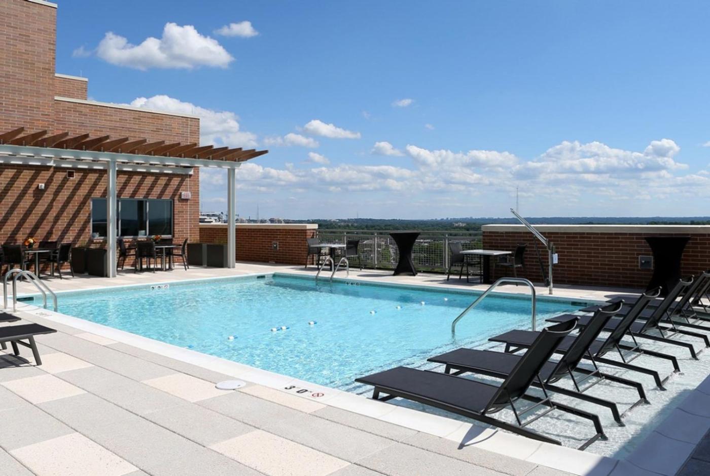 Guests can enjoy the rooftop pool at Bethesda 2br w wd gym pool nr dining WDC-661.