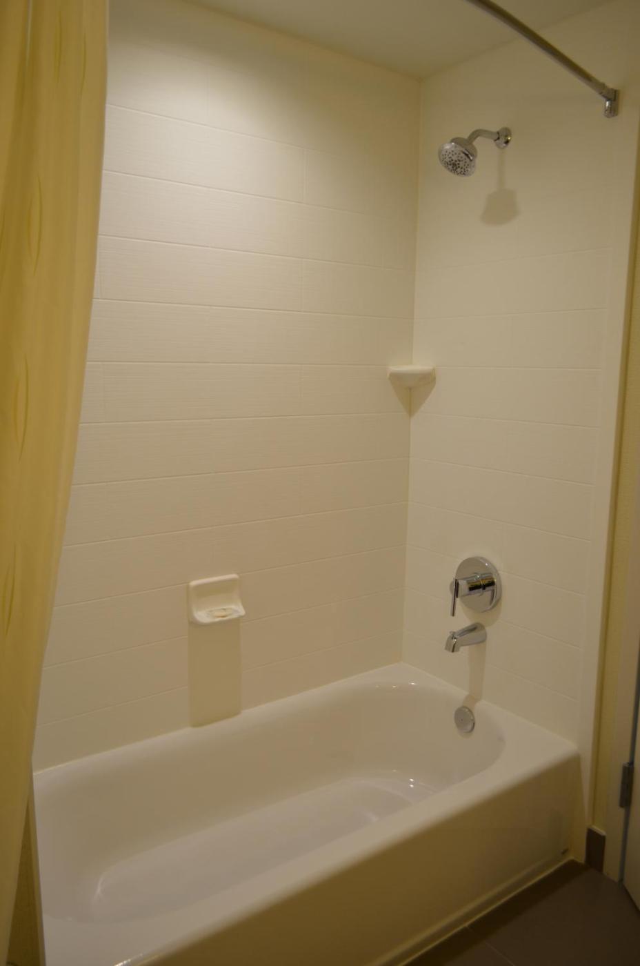 King Suite with Walk In Shower - Non-Smoking. A separate seating area with a sofa bed and cable TV is featured in this suite. There is also a microwave. ;