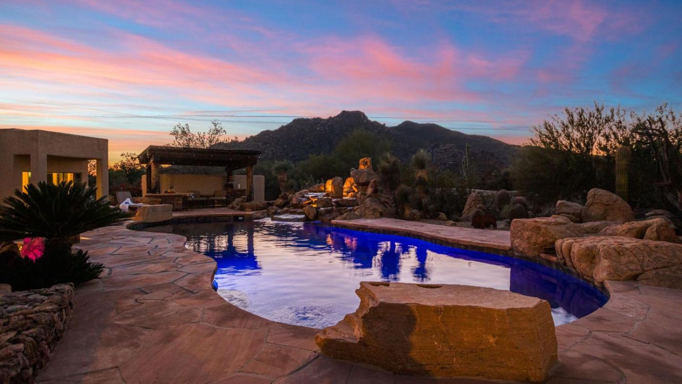 Featuring air-conditioned accommodation with a patio, 5BDR Oasis w Waterfall Pool Hot Tub Desert View Desert Cascase by AvantStay is located in Cave Creek. The property is around 15 km from Troon North Golf Club, 21 km from Musical Instrument Museum and 25 km from Pioneer Living History Village. Providing free WiFi throughout the property, the non-smoking holiday home features a hot tub.