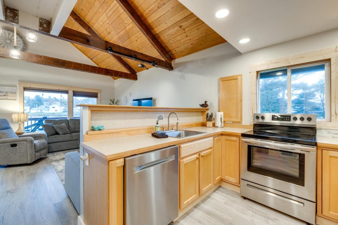 Riverfront Coastal Retreat with Easy Beach Access is situated in Cloverdale, 31 km from Chinook Winds Golf Resort, 37 km from Tillamook Air Museum, and 41 km from Cape Meares Lighthouse. The holiday home is 42 km from Tillamook Cheese Factory. Free WiFi is available throughout the property and Pacific City Beach is 300 metres away.