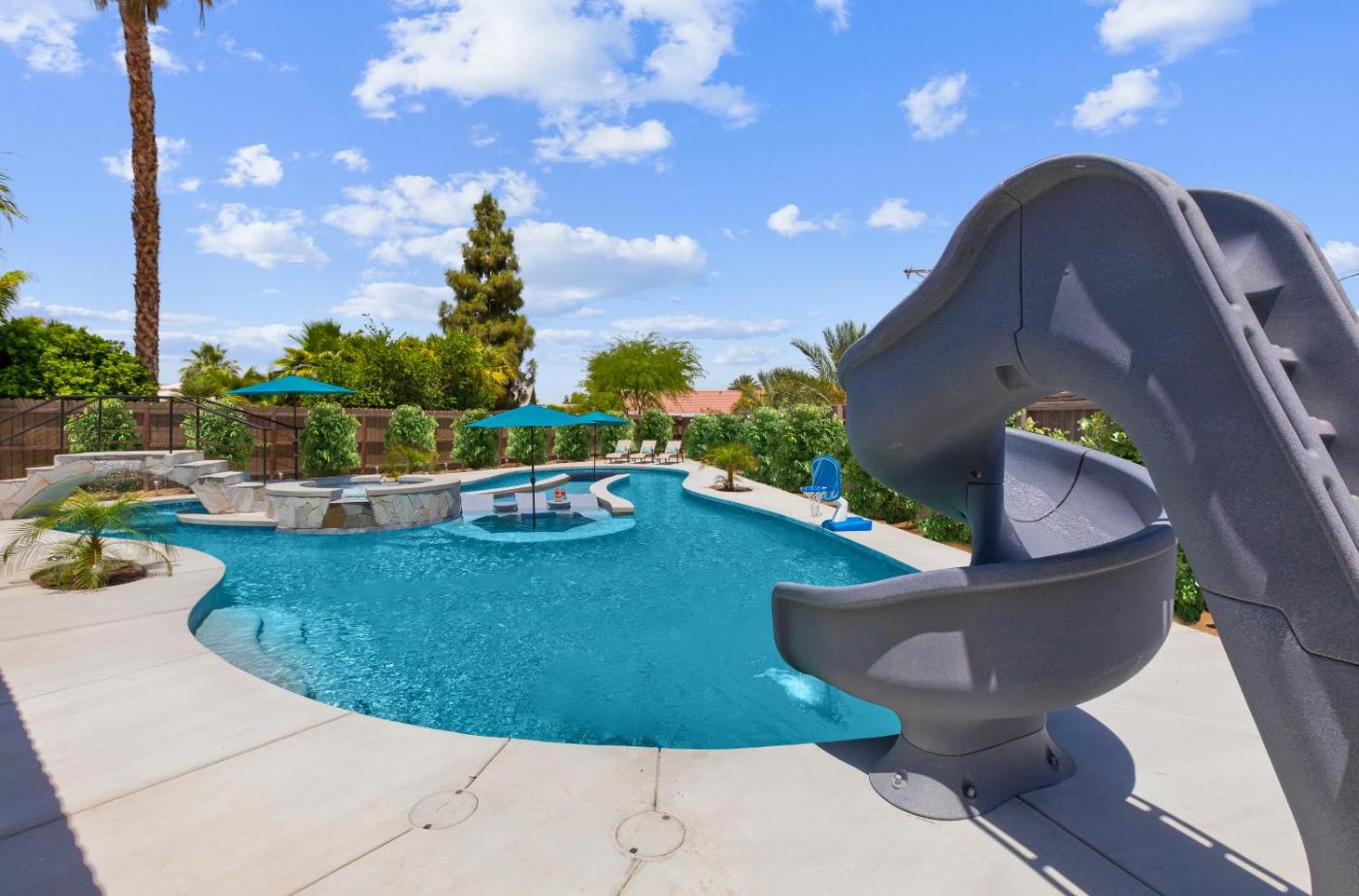 Set in Coachella, LAZY RIVER POOL, Water slide, Kids outdoor play area, Arcade games offers accommodation with private pool, free WiFi and free private parking for guests who drive. The air-conditioned accommodation is 22 km from Saks Fifth Avenue Palm Desert. The property is non-smoking and is located 42 km from Escena Golf Club.