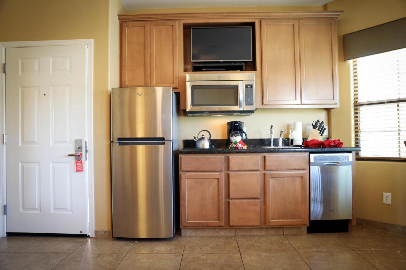 One-Bedroom Suite. This suite includes 1 living room, 1 separate bedroom and 1 bathroom with a bath or a shower and free toiletries. In the well-equipped kitchen, guests will find a stovetop, a refrigerator, a dishwasher and kitchenware. This air-conditioned suite features a dining area, a flat-screen TV with cable channels a tea and coffee maker and a patio. The unit has 2 beds. ;