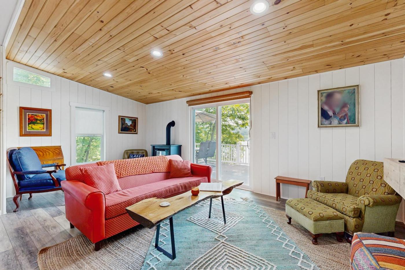 Three-Bedroom House. The fireplace is a top feature of this holiday home. Boasting a private entrance, this holiday home also comes with 3 bedrooms, a seating area and 1 bathroom with a bath and a hairdryer. Guests will find a stovetop, a refrigerator, a dishwasher and kitchenware in the fully equipped kitchen. The holiday home also includes a barbecue. The holiday home features a washing machine, a tea and coffee maker, a dining area, a flat-screen TV with streaming services, as well as lake views. The unit has 4 beds.