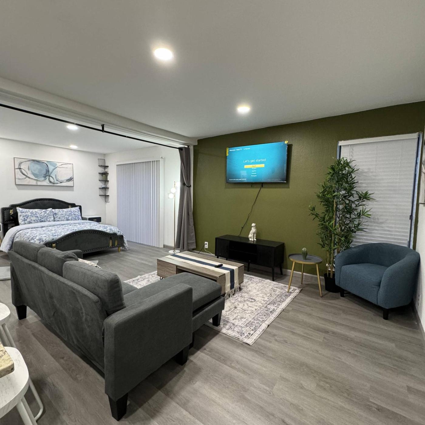 One-Bedroom Apartment. This spacious apartment features 1 bedroom, a seating area with a sofa and 1 bathroom with a shower. The apartments kitchen is available for cooking and storing food. This apartment is air-conditioned and has a flat-screen TV, a washing machine, a wardrobe and heating. The unit has 1 bed.