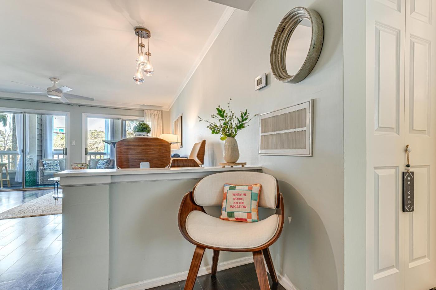 The apartment conveniently has an outdoor pool.