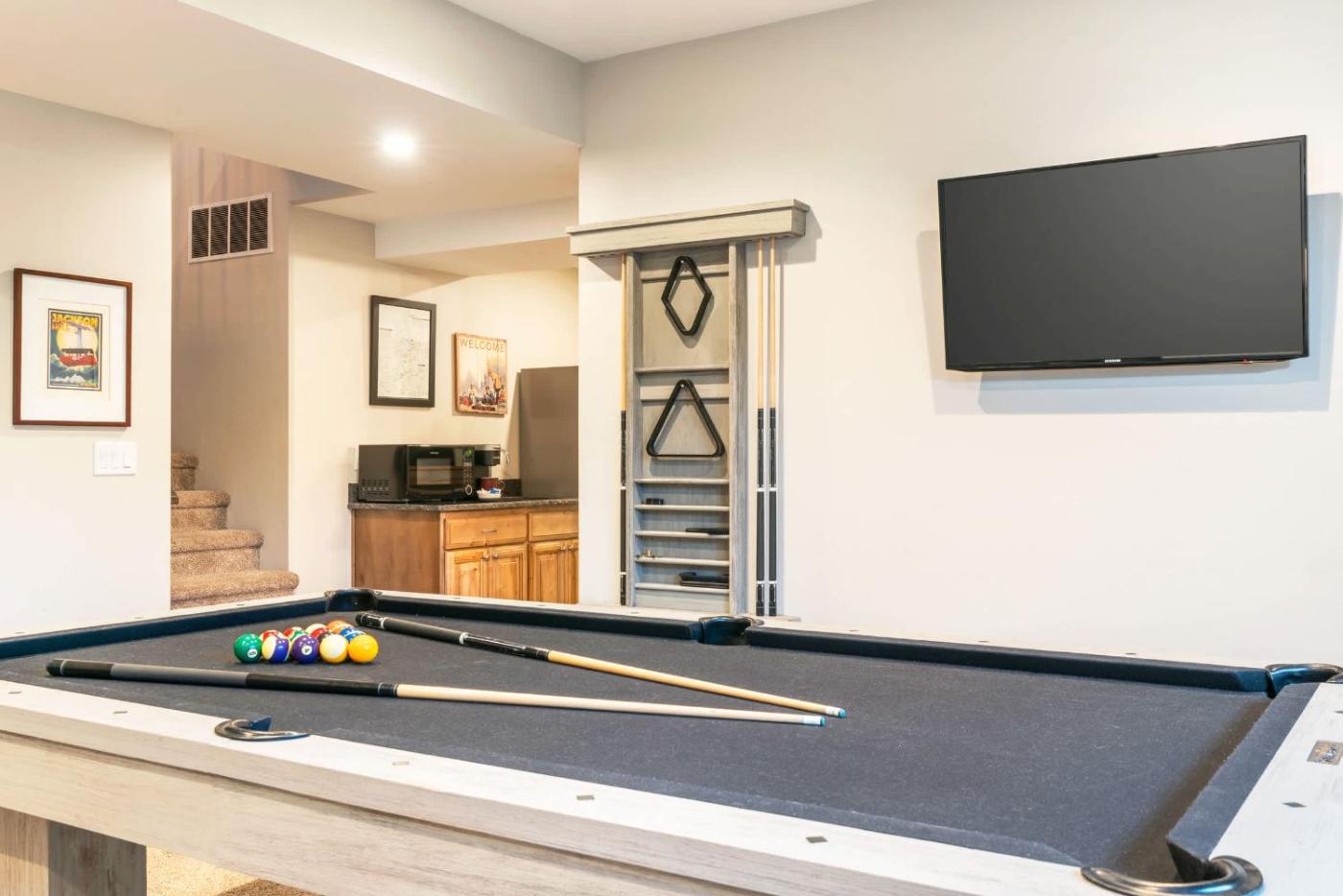 Located in Driggs, Huge Chalet Theater Hot Tub Gym provides accommodation with access to a garden. Providing free WiFi throughout the property, the non-smoking holiday home has a fitness centre.