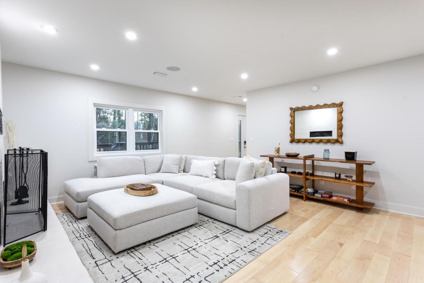 Holiday Home. This holiday homes special feature is the fireplace. Featuring a private entrance, this air-conditioned holiday home comprises 2 living rooms, 4 separate bedrooms and 5 bathrooms with a walk-in shower and a bath. Guests will find a stovetop, a refrigerator, a dishwasher and kitchenware in the kitchen. The holiday home also provides guests with a barbecue. The spacious holiday home provides a washing machine, a tea and coffee maker, a dining area, a flat-screen TV with streaming services, as well as lake views. The unit offers 8 beds.