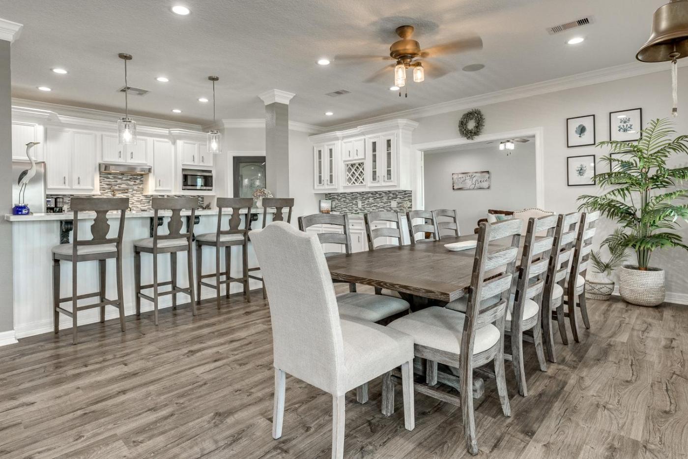 Five-Bedroom House. This holiday homes standout features are the private pool and hot tub. Featuring a private entrance, this spacious holiday home also comprises 5 bedrooms, a seating area and 6 bathrooms with a walk-in shower and a bath. Guests will find a stovetop, a refrigerator, a dishwasher and kitchenware in the kitchen. The holiday home also provides guests with a barbecue. The air-conditioned holiday home provides a TV with streaming services, a washing machine, a tea and coffee maker, a dining area as well as pool views. The unit offers 8 beds.