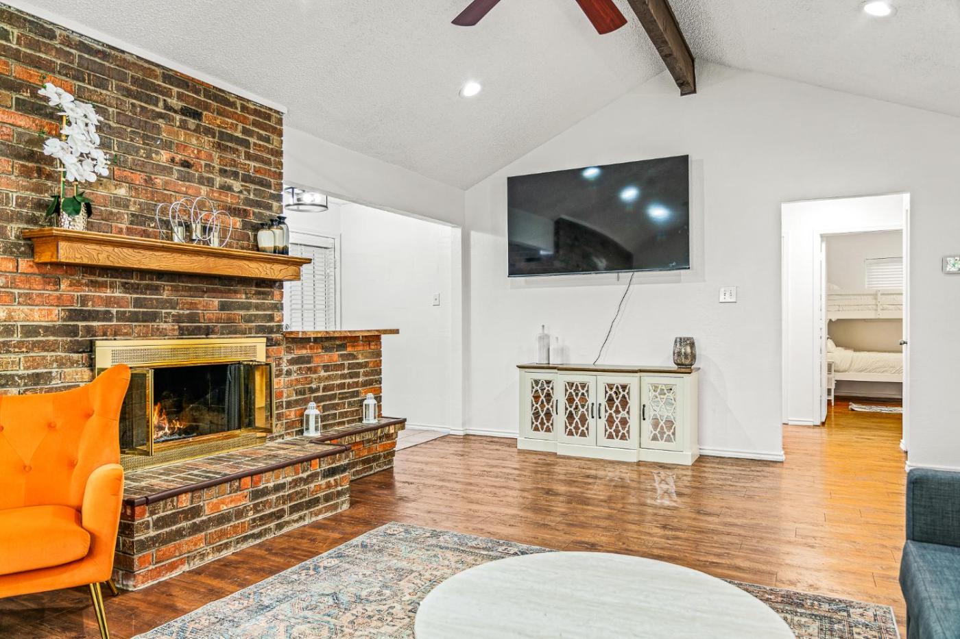 The spacious holiday home features 3 separate bedrooms, 2 bathrooms, a fully equipped kitchen with a dining area and dishwasher, and a living room with a flat-screen TV. Featuring air conditioning, this unit has a dressing room and a fireplace. The property has an outdoor dining area.