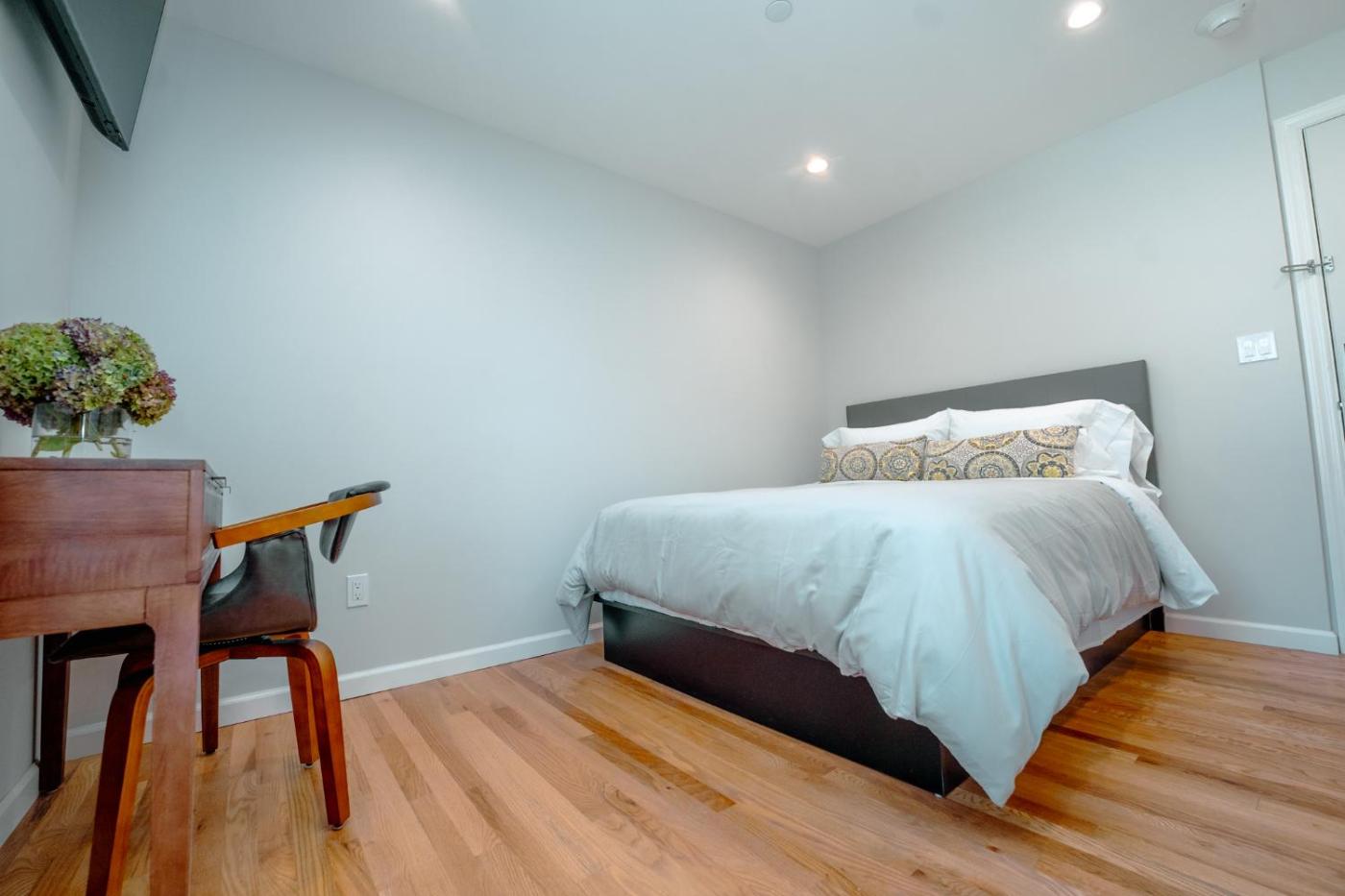 Deluxe Queen Room. The double room provides air conditioning, a tea and coffee maker, as well as a private bathroom featuring a shower and a hairdryer. The double room features a wardrobe, a safe deposit box, heating, a flat-screen TV, as well as a quiet street view. The unit offers 1 bed. ;