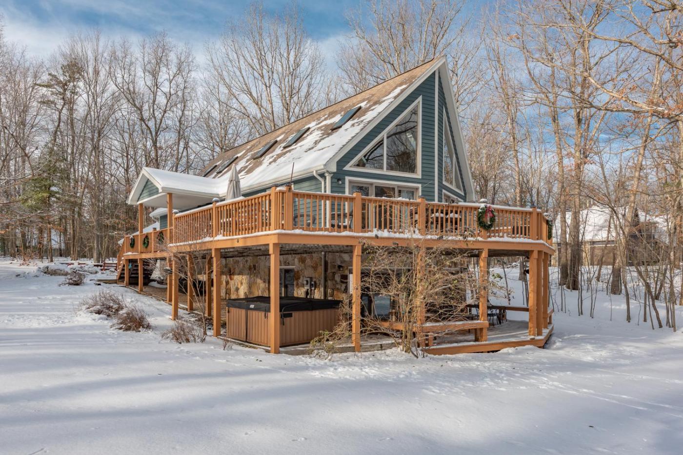 The holiday home is composed of 4 separate bedrooms, a living room, a fully equipped kitchen with a dishwasher and oven, and 3 bathrooms. The accommodation offers a fireplace.