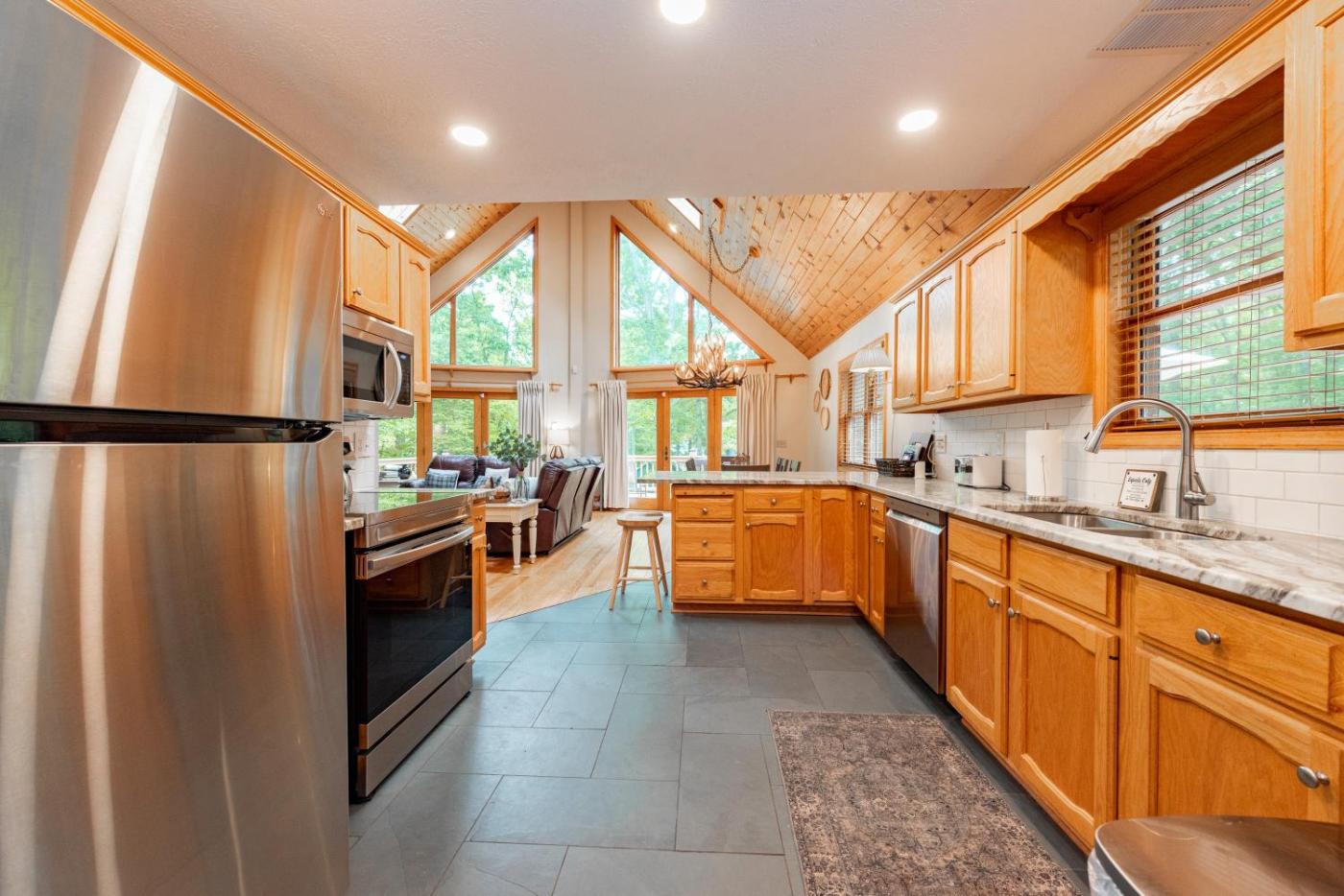 Four-Bedroom House. The fireplace is the standout feature of this holiday home. This spacious holiday home comes with 1 living room, 4 separate bedrooms and 3 bathrooms with a hairdryer. Guests will find a stovetop, a refrigerator, a dishwasher and an oven in the well-equipped kitchen. The holiday home also includes a barbecue. The holiday home features a tea and coffee maker and tumble dryer. The unit has 4 beds.