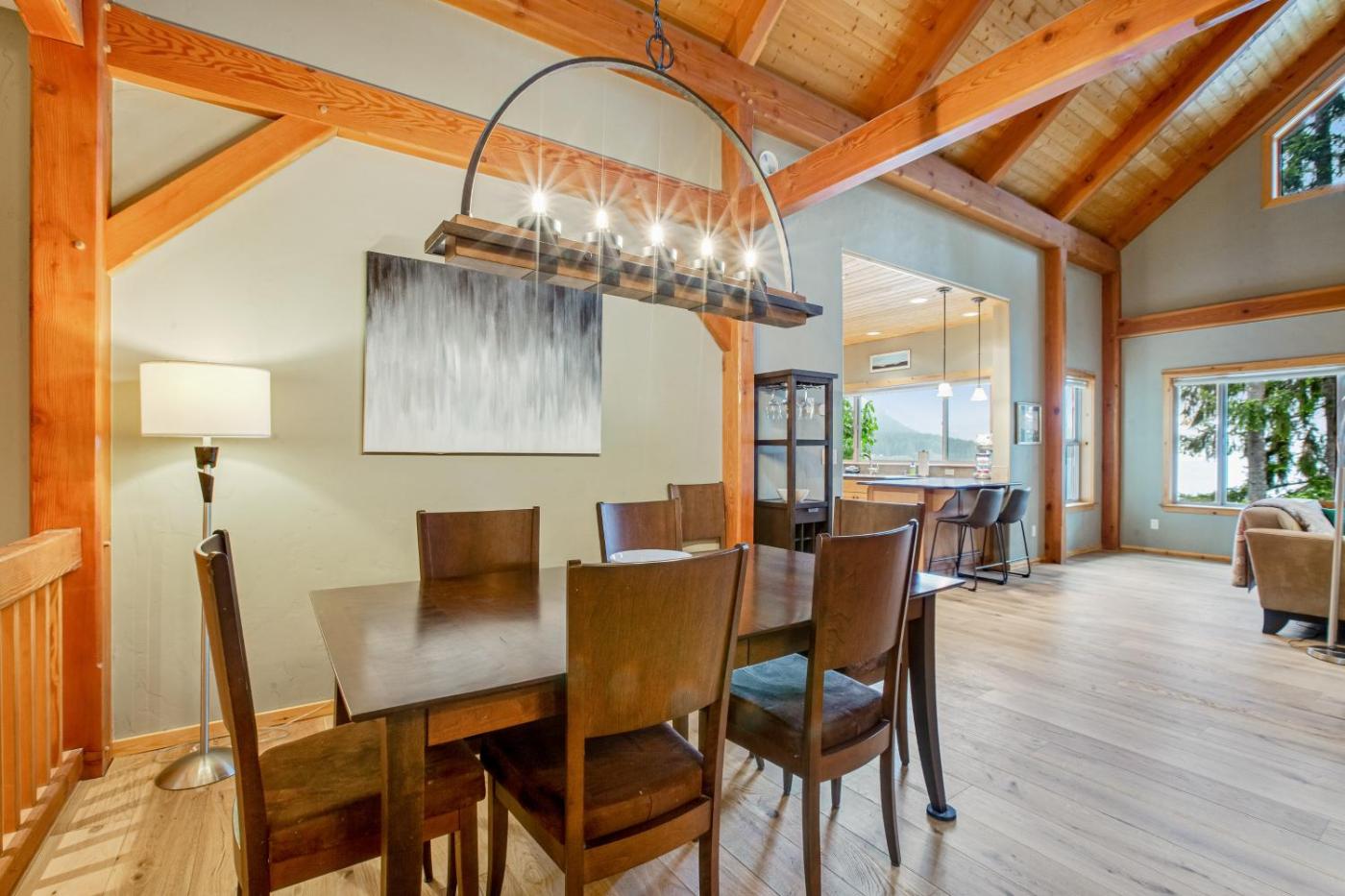 Boasting a spa bath, Woodstone Cabin isin Hoodsport. The property features mountain and lake views. Outdoor seating is also available at the holiday home.