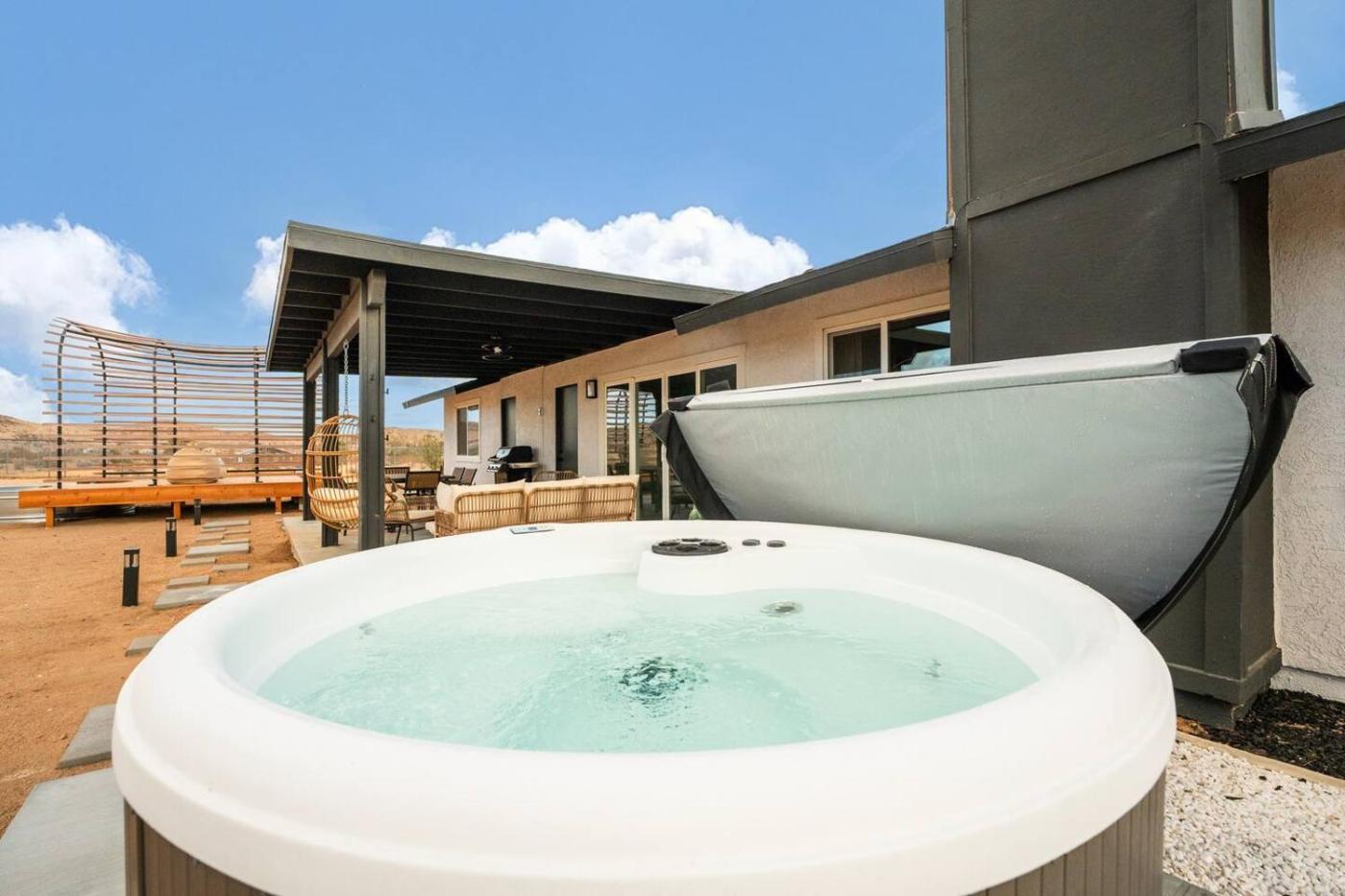 Located in Joshua Tree in the California region, The Golden Abode with Spa - Fire pit - Hammocks - Central - Cowboy Pool features a balcony. This property offers access to a terrace, free private parking and free WiFi. The holiday home has an outdoor fireplace and a hot tub.