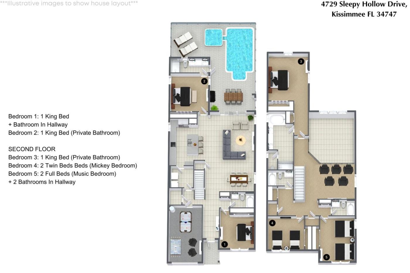 Boasting air-conditioned accommodation with a private pool, 5 Bedrooms 5 Bathrooms Storey Lake 4729 Sh is situated in Kissimmee. The property is around 10 km from Disney Springs, 11 km from ESPN Wide World of Sports and 11 km from Disneys Hollywood Studios. Free WiFi is available throughout the property and Gatorland is 10 km away.