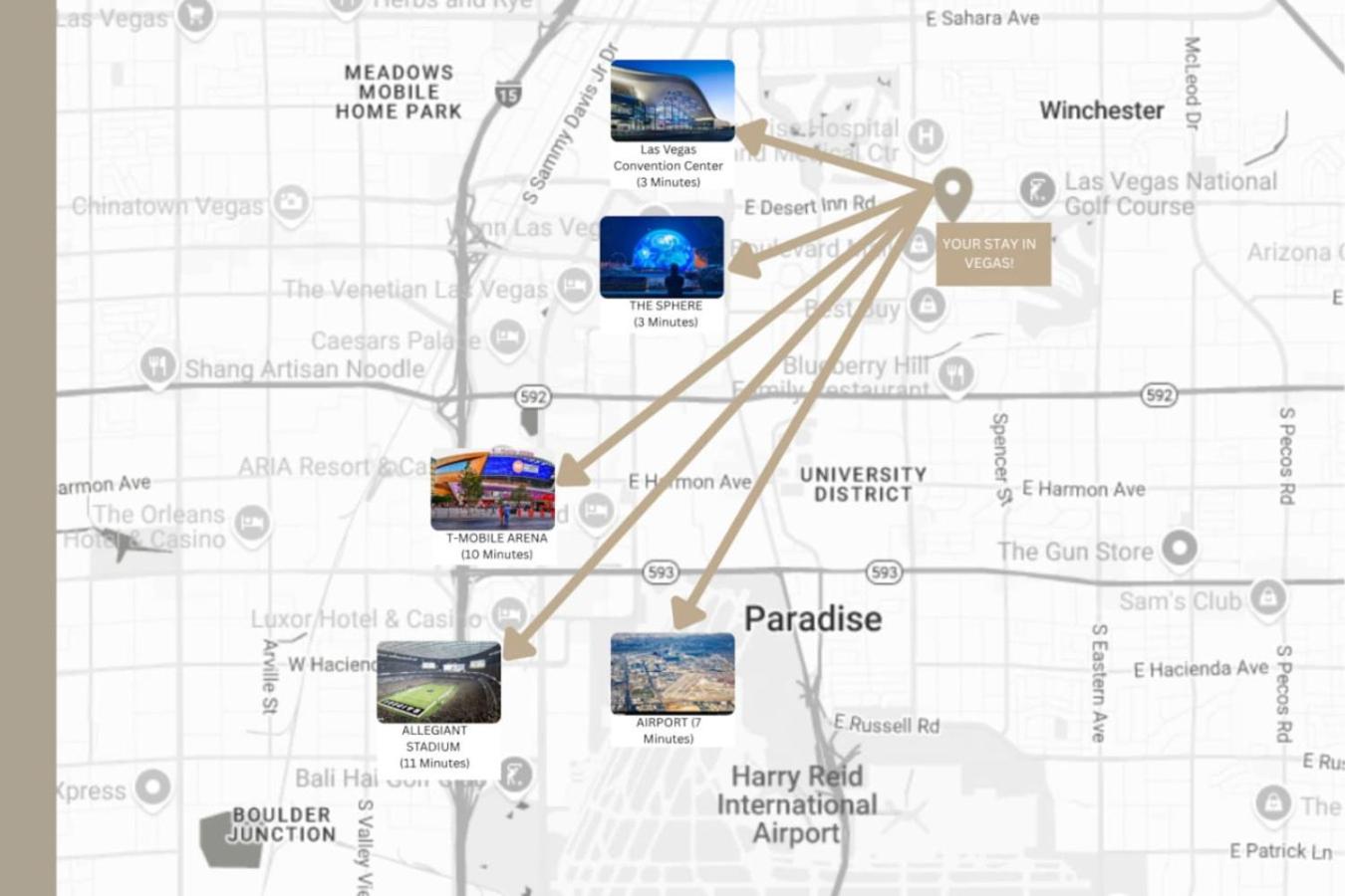 The Sphere Vegas is 3.9 km from Mid Century Modern near STRIP w Pool King Suite, while The Sphere Vegas is 3.9 km from the property. Harry Reid International Airport is 7 km away.