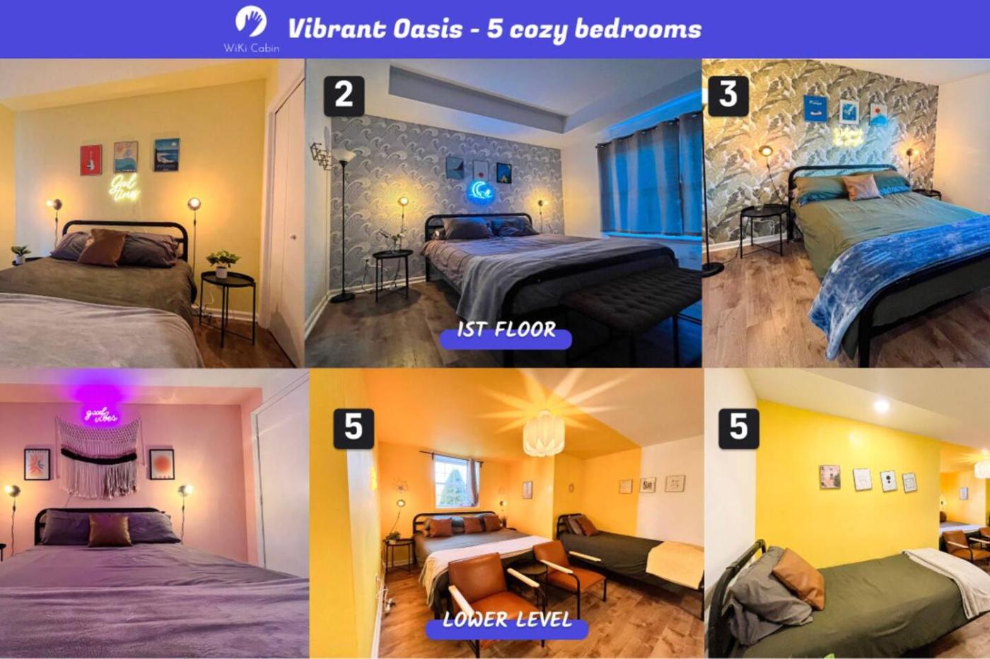 The holiday home is composed of 5 separate bedrooms, a fully equipped kitchen, and 4 bathrooms.
