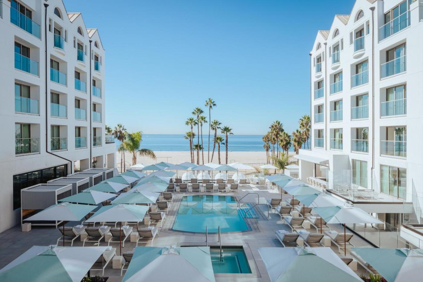 The hotel features an expansive fitness center, indoor and outdoor meeting and event spaces, and immediate proximity to Santa Monicas iconic attractions.