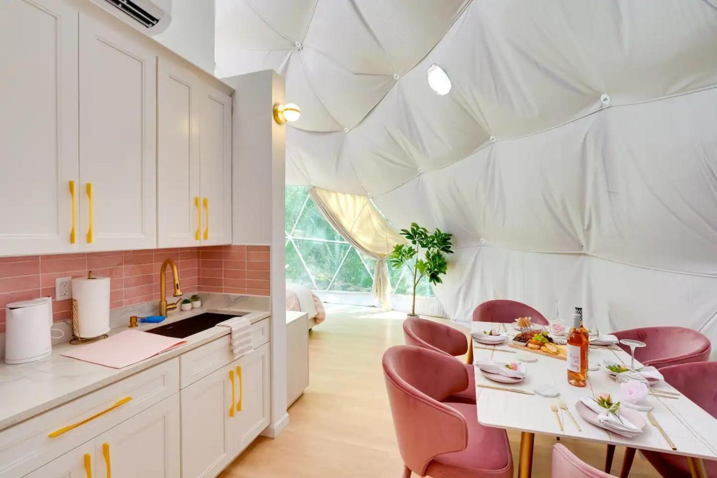 For guests with children, the luxury tent provides outdoor play equipment. Unique Escapes - RoséDay Geodome features an outdoor fireplace and a picnic area.