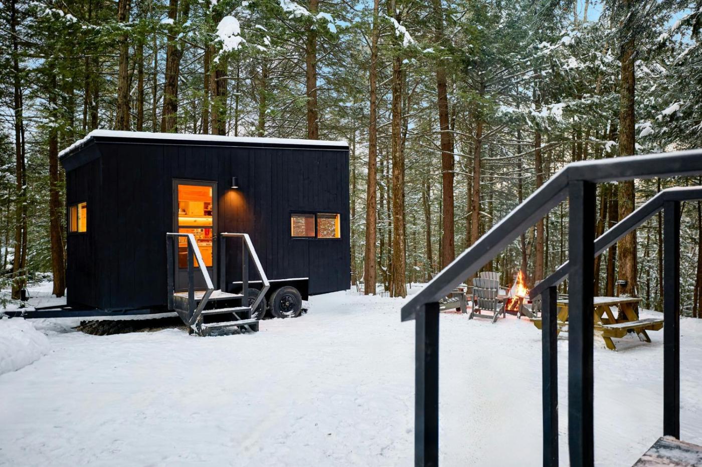 Cabin with Queen Bed - Accessible. The well-fitted kitchenette has a stovetop, a refrigerator and kitchenware. The double room features air conditioning, a private entrance, as well as an outdoor dining area and outdoor furniture. The unit has 1 bed. ;
