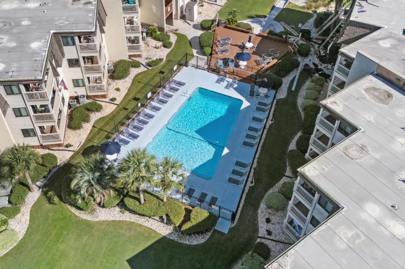 Guests can enjoy the outdoor swimming pool and garden at Golden Mile - Oceanfront Retreat Myrtle Beach.
