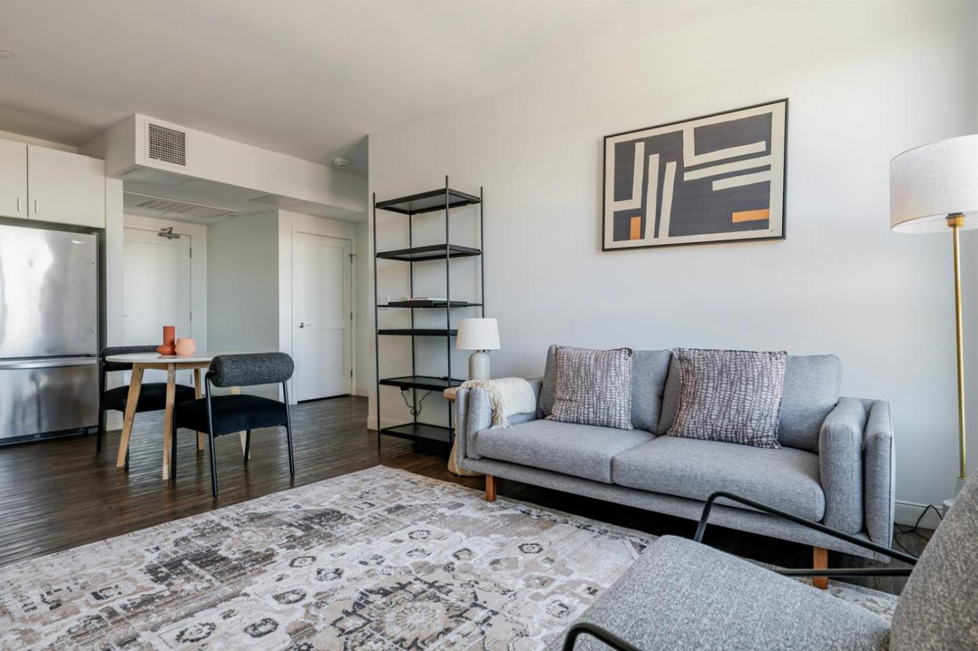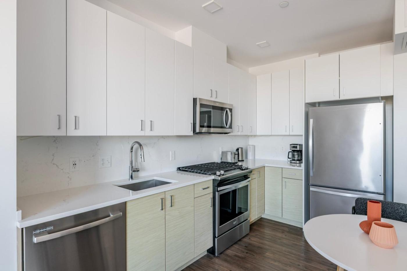 Dining options are available close to Blueground Newtonville fitness center nr Crystal Lake BOS-1239.