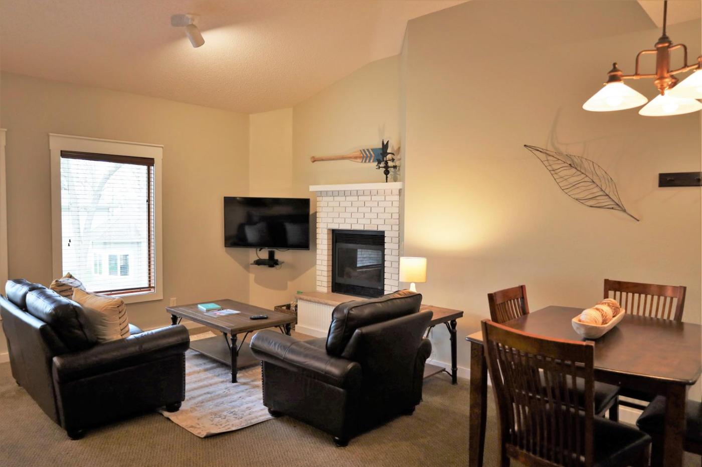 Two-Bedroom Apartment. Guests will have a special experience as this apartment provides a fireplace. Guests will find a stovetop, a refrigerator, a dishwasher and kitchenware in the well-fitted kitchen. The apartment also has a barbecue. The spacious air-conditioned apartment offers a flat-screen TV with cable channels, a washing machine, a private entrance, a tea and coffee maker as well as lake views. The unit offers 4 beds.