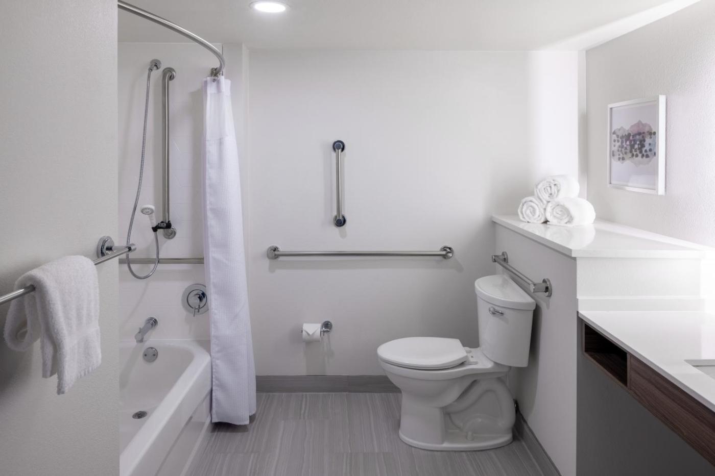 Standard King Room with Mobility Accessible Tub. The spacious double room features air conditioning, a tea and coffee maker, as well as a private bathroom boasting a walk-in shower and a hairdryer. The double room provides a wardrobe, a safe deposit box, a tiled floor, a carpeted floor and a flat-screen TV with cable channels. The unit has 1 bed. ;