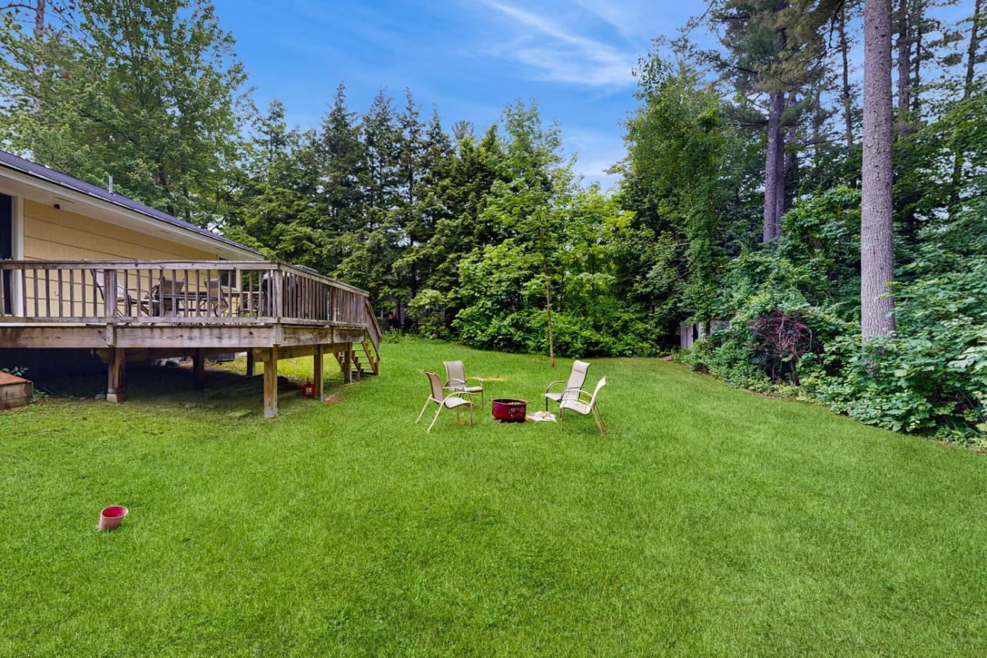 Guests at the holiday home will be able to enjoy activities in and around North Conway, like cycling. Guests can also warm themselves near outdoor fireplace after a day of skiing.