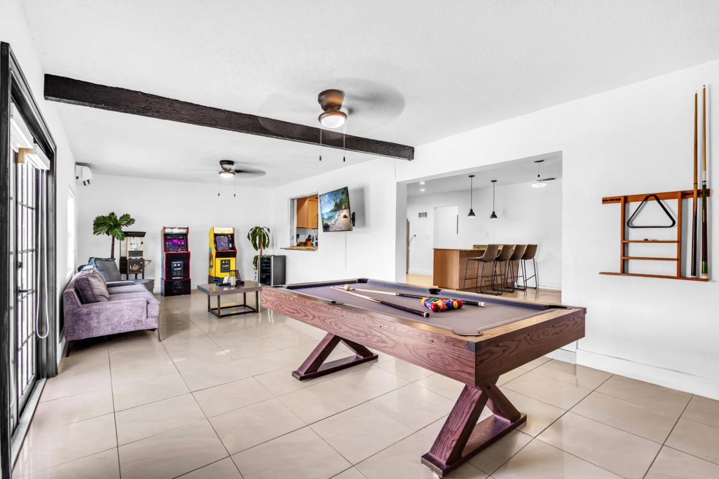 Featuring air-conditioned accommodation with a private pool, lake view and a patio, Miami Paradise Waterfront Games isin North Miami Beach. The 5-star holiday home is 11 km from Hard Rock Stadium. Offering free WiFi throughout the property, the non-smoking holiday home has a fitness centre.