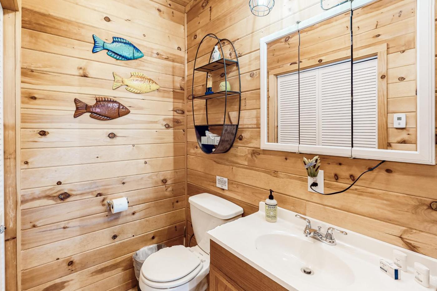 Two-Bedroom House. The fireplace is a top feature of this holiday home. Boasting a private entrance, this holiday home comes with 1 living room, 2 separate bedrooms and 1 bathroom with a shower and a hairdryer. Guests will find a stovetop, a refrigerator, kitchenware and an oven in the well-equipped kitchen. The holiday home also includes a barbecue. The holiday home features a flat-screen TV with streaming services, a tea and coffee maker, a seating area, a dining area as well as lake views. The unit has 4 beds.