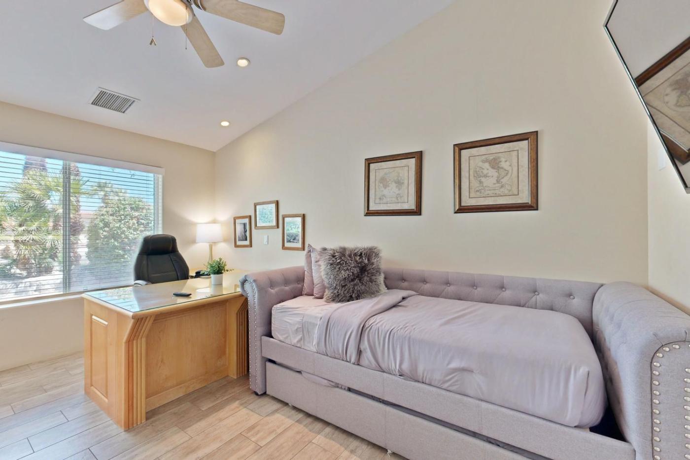 Featuring air-conditioned accommodation with a private pool, Palm Villa - paradise with private pool, spas, & putting green is located in Palm Desert. The holiday home has a hot tub and an ATM.