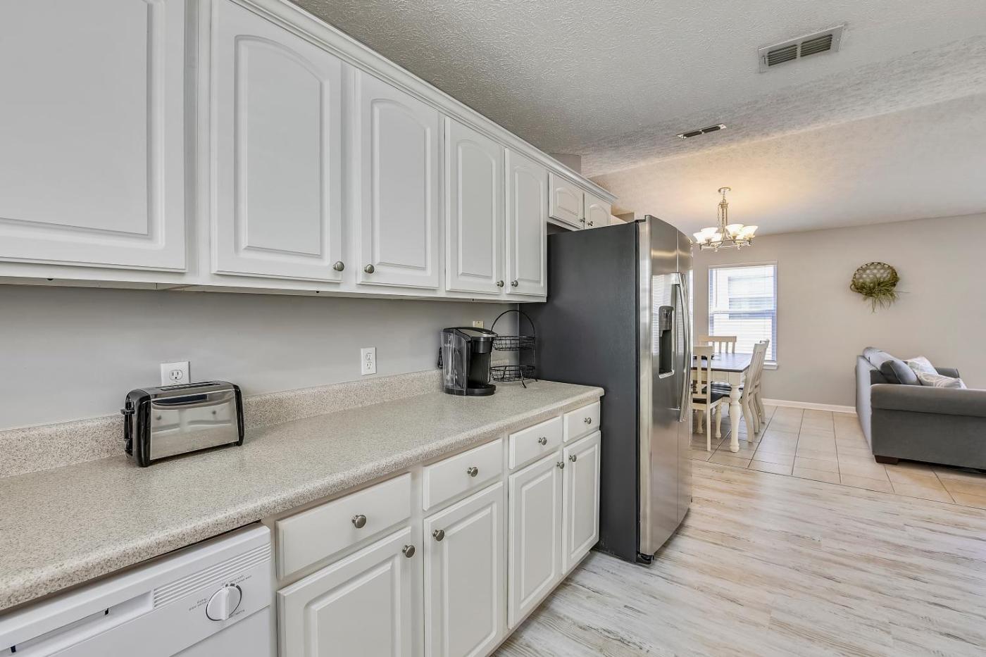 Three-Bedroom Townhouse. This spacious holiday home includes 1 living room, 3 separate bedrooms and 2 bathrooms with a bath or a shower and a hairdryer. In the well-fitted kitchen, guests will find a stovetop, a refrigerator, a dishwasher and kitchenware. The holiday home offers a washing machine, a tea and coffee maker, a seating area, a flat-screen TV with cable channels, as well as pool views. The unit has 5 beds.