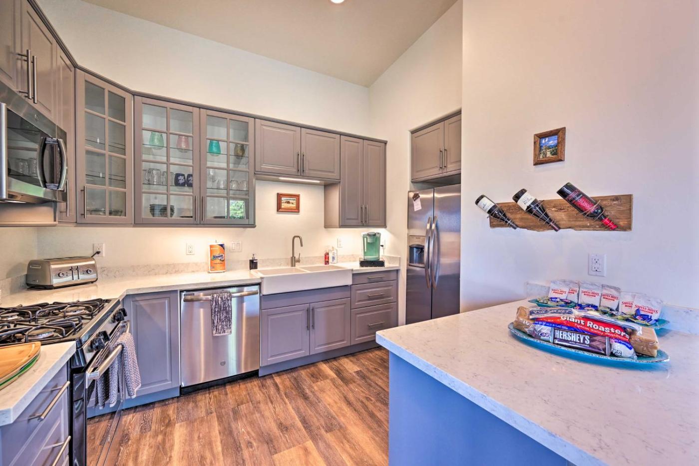 Holiday Home. The hot tub and fireplace are the standout features of this holiday home. Featuring a private entrance, this spacious holiday home also comprises 3 separate bedrooms and 2 bathrooms with a bath and a shower. The well-equipped kitchen features a stovetop, a refrigerator, a dishwasher and kitchenware. The air-conditioned holiday home provides a flat-screen TV, a washing machine, a coffee machine and tumble dryer. The unit offers 3 beds.