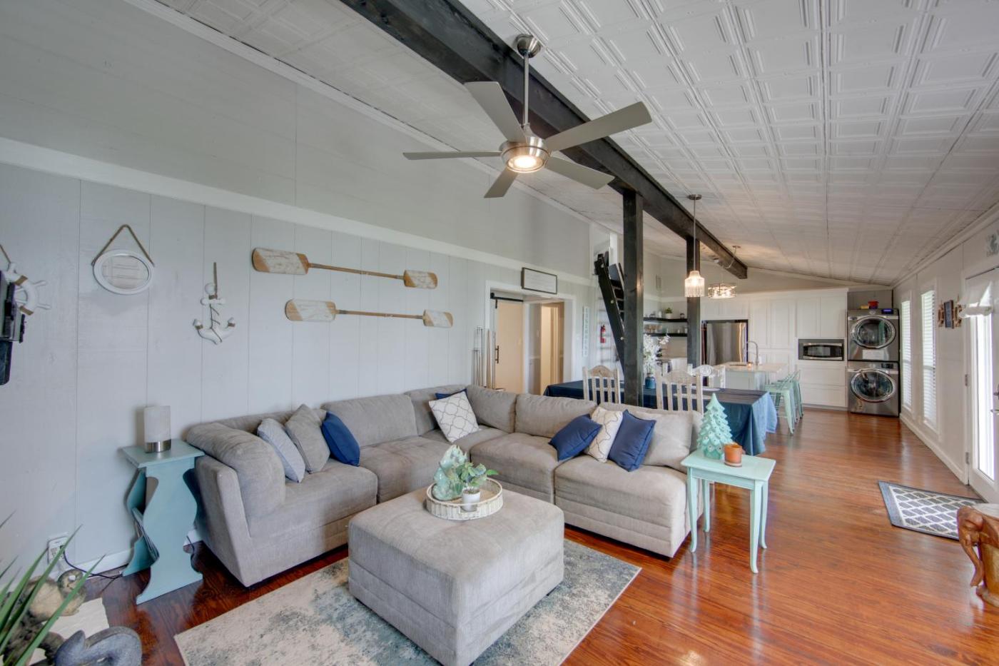 Holiday Home. Featuring a private entrance, this air-conditioned holiday home comprises 2 living rooms, 3 separate bedrooms and 2 bathrooms with a bath and a shower. Guests will find a stovetop, a refrigerator, a dishwasher and kitchenware in the well-fitted kitchen. The holiday home also provides guests with a barbecue. The spacious holiday home provides a washing machine, a coffee machine, tumble dryer, a flat-screen TV, as well as lake views. The unit offers 6 beds.