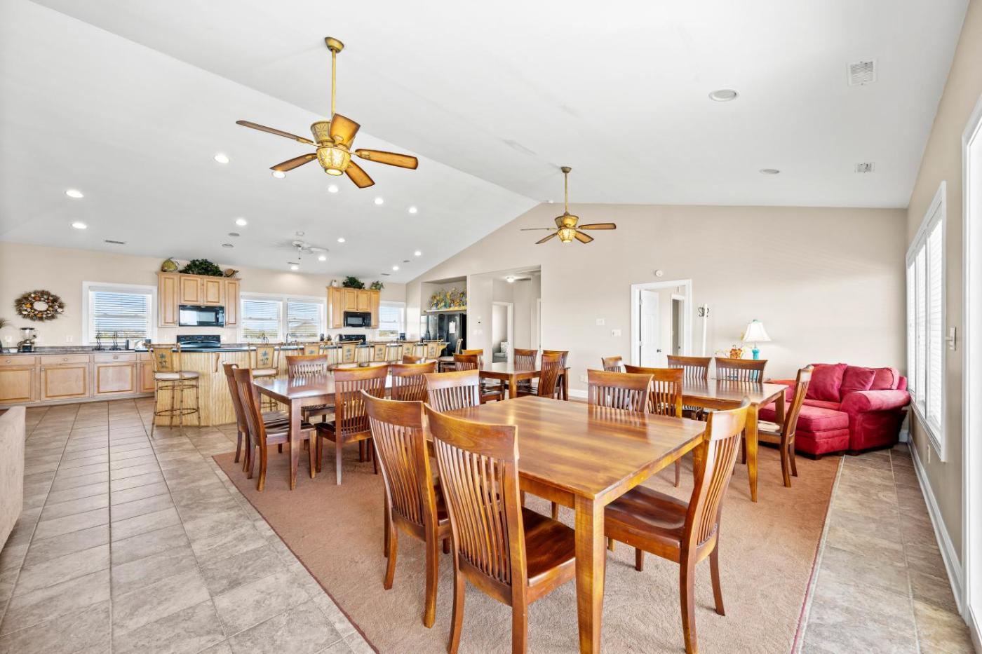 The holiday home consists of 10 bedrooms, a fully equipped kitchen and 12 bathrooms.