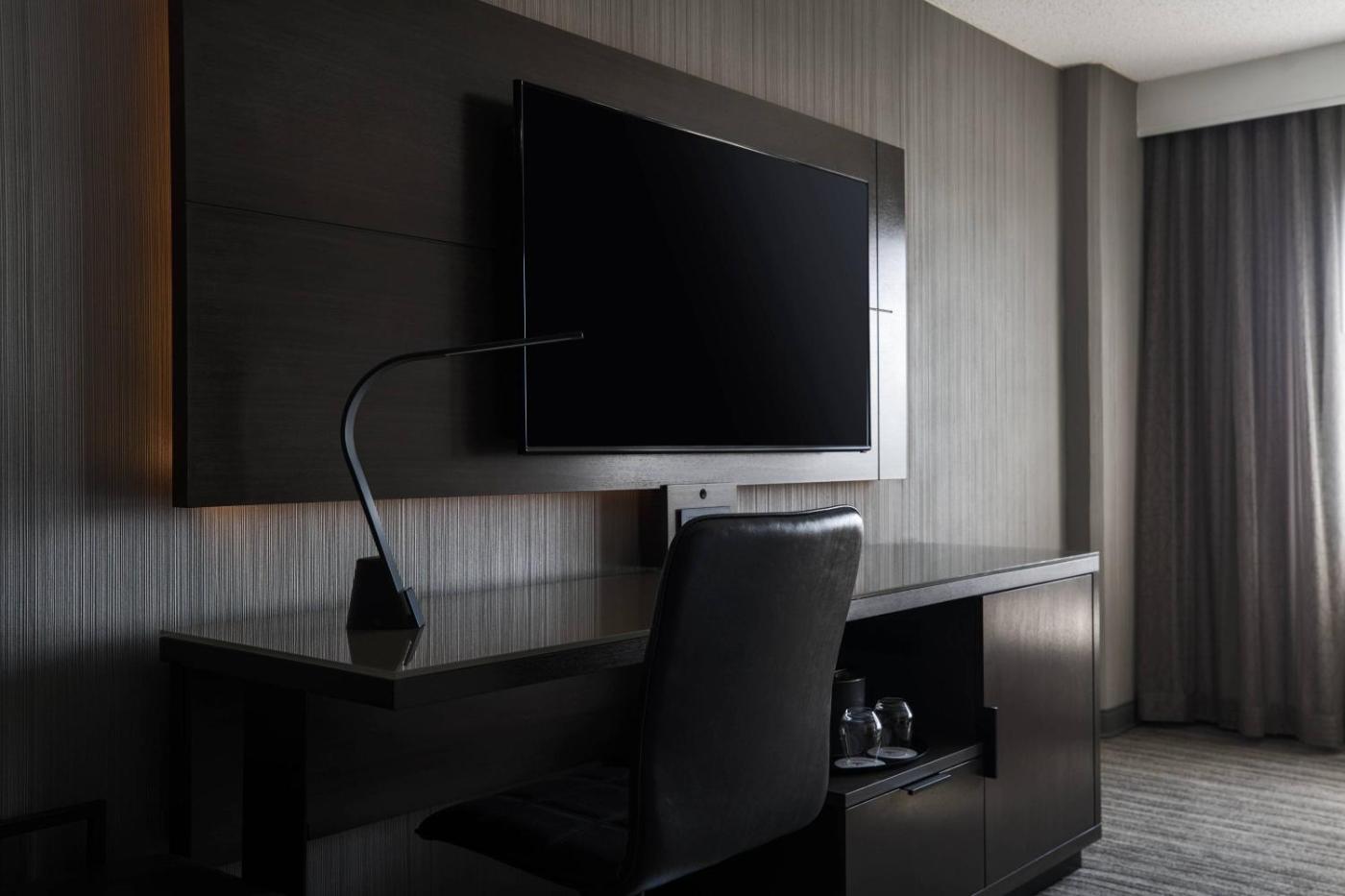 Every room at Chicago Marriott Schaumburg offers a 32-inch LCD TV with satellite channels, an oversized chair with ottoman and a coffee maker. Room service is available.