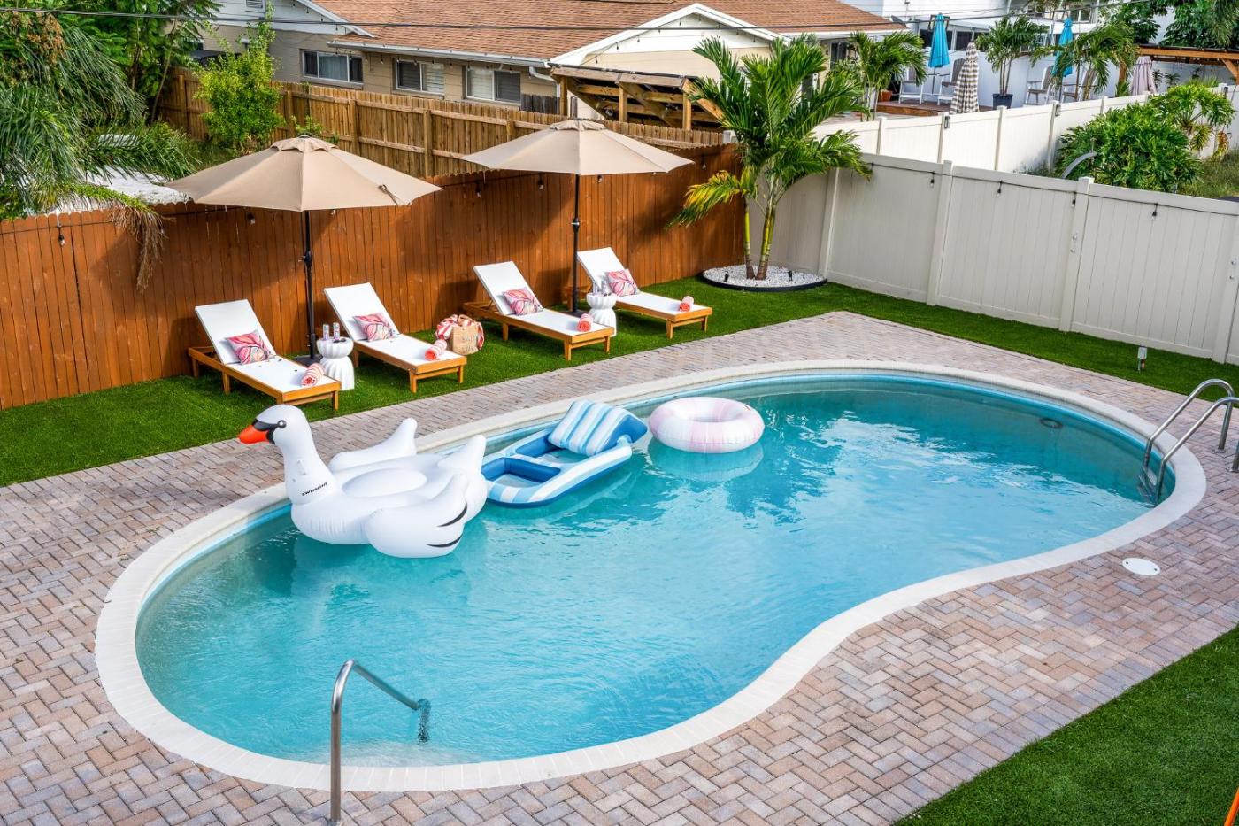 Boasting air-conditioned accommodation with a private pool, pool view and a balcony, Casa Palmera Family Villa 5 Minutes to the Beach with Heated Pool and Outdoor Cinema is situated in Seminole. This property offers access to a terrace, a pool table, free private parking and free WiFi. On clear days, guests can head outside to enjoy the holiday homes outdoor fireplace or simply kick back and relax.