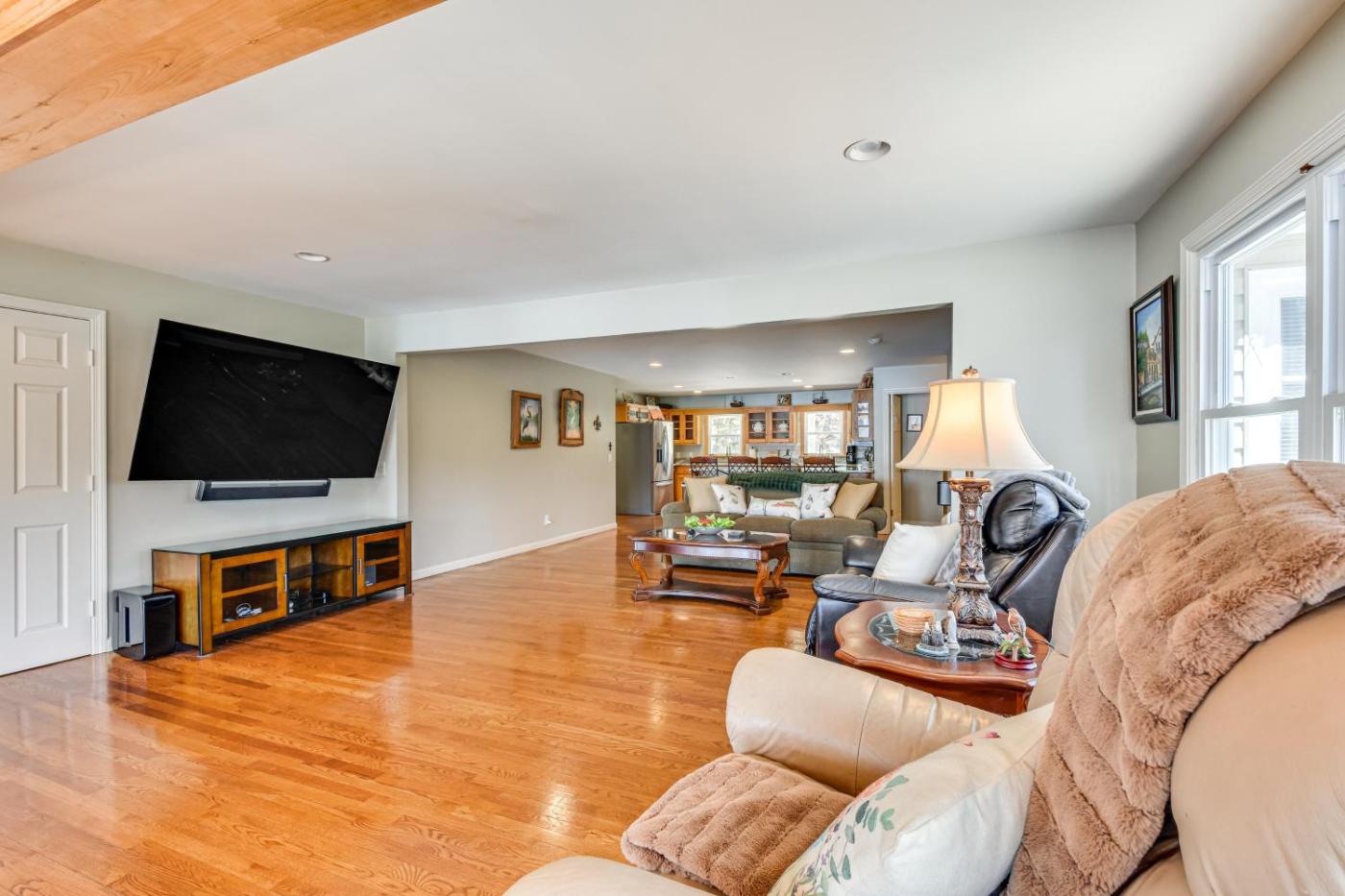 Holiday Home. The fireplace is the standout feature of this holiday home. Boasting a private entrance, this air-conditioned holiday home includes 2 living rooms, 4 separate bedrooms and 4 bathrooms with a bath and a shower. Guests will find a stovetop, a refrigerator, a dishwasher and kitchenware in the well-equipped kitchen. The holiday home also features a barbecue. The spacious holiday home offers a washing machine, a coffee machine, a wardrobe, a flat-screen TV with cable channels, as well as lake views. The unit has 7 beds.