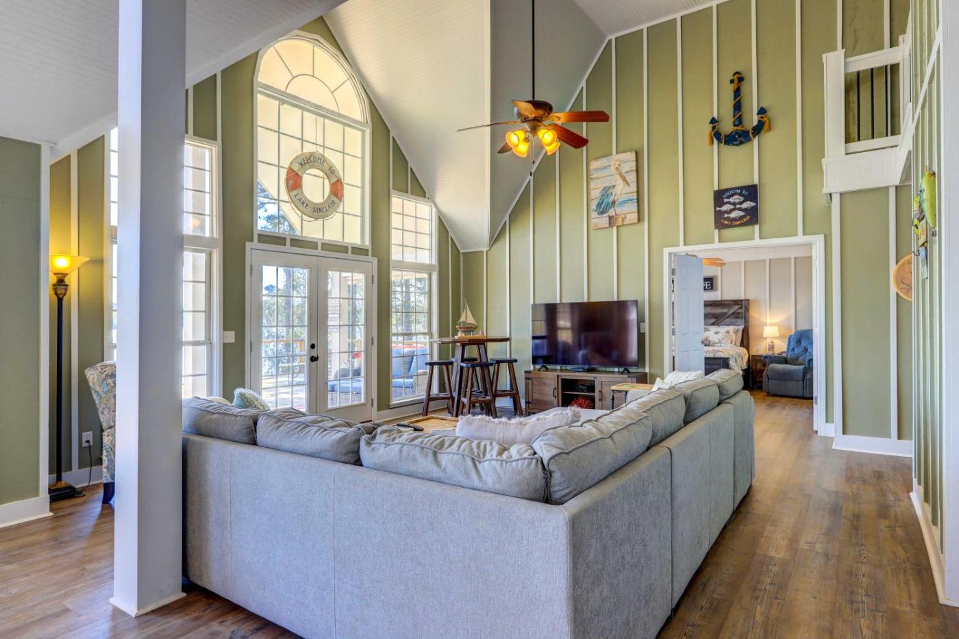Boasting a spa bath, Dock and Fire Pit Stunning Lake Sinclair Home! is situated in Sparta. The property features lake views. Free WiFi is provided throughout the property.