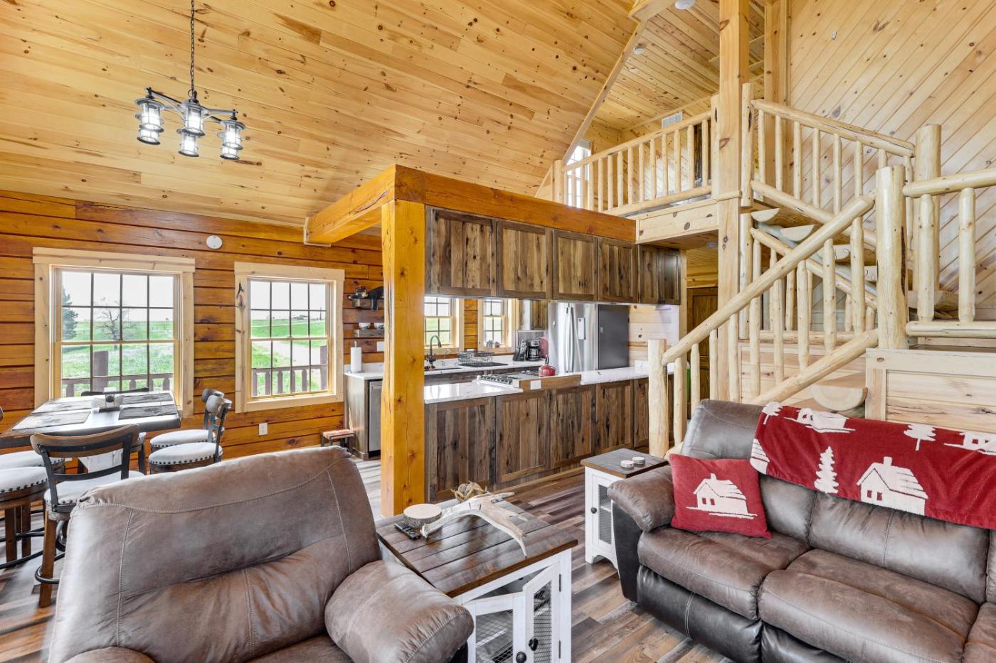 Located in Sundance in the Wyoming region, Peaceful Wyoming Cabin with Spacious Deck and Wet Bar! features a balcony. This holiday home provides a bar. Free WiFi is available throughout the property and Devils Tower National Monument is 22 km away.