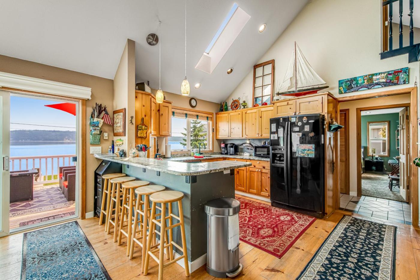 Three Bedroom holiday home. This holiday homes special feature is the fireplace. Featuring a private entrance, this spacious holiday home also comprises 3 bedrooms, a seating area and 2 bathrooms with a walk-in shower and a bath. Guests will find a stovetop, a refrigerator, a dishwasher and kitchenware in the well-fitted kitchen. The holiday home also provides guests with a barbecue. The holiday home provides a washing machine, a minibar, a tea and coffee maker, a TV with streaming services, as well as sea views. The unit offers 3 beds.