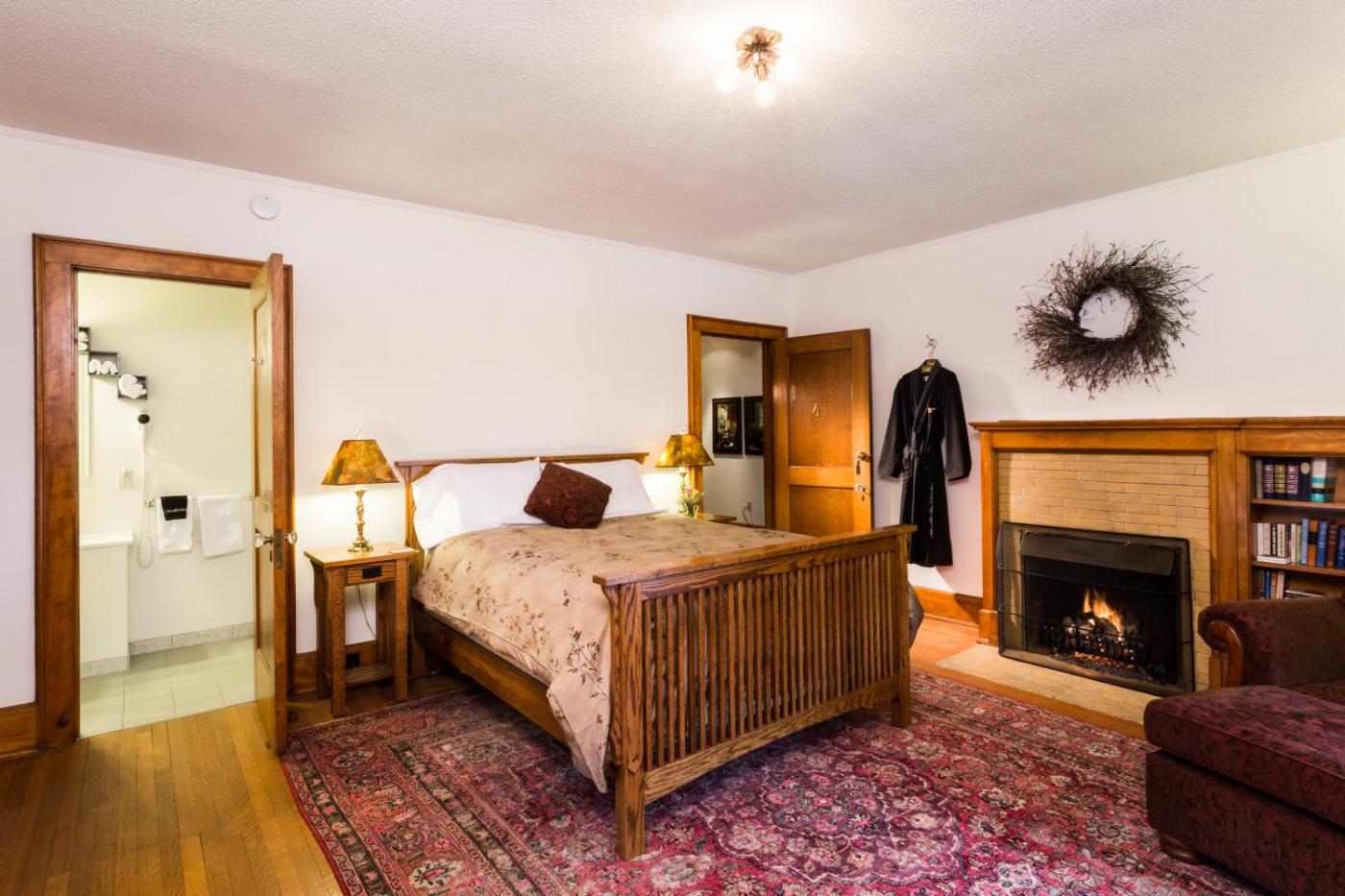 Deluxe Queen Room. This double room features a fireplace. Featuring free toiletries and bathrobes, this double room includes a private bathroom with a walk-in shower, a hairdryer and slippers. The air-conditioned double room features a flat-screen TV with cable channels, a tea and coffee maker, executive lounge access, a seating area as well as a quiet street view. The unit has 1 bed. ;