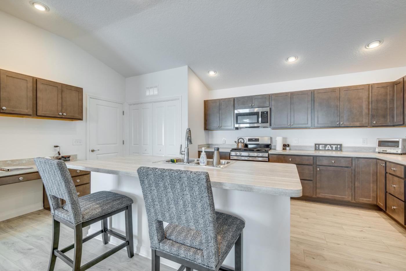 The spacious holiday home has 2 bedrooms, a flat-screen TV with cable channels, a fully equipped kitchen with a dishwasher and an oven, a washing machine, and 2 bathrooms with a bath. Towels and bed linen are available in the holiday home. The property has an outdoor dining area.