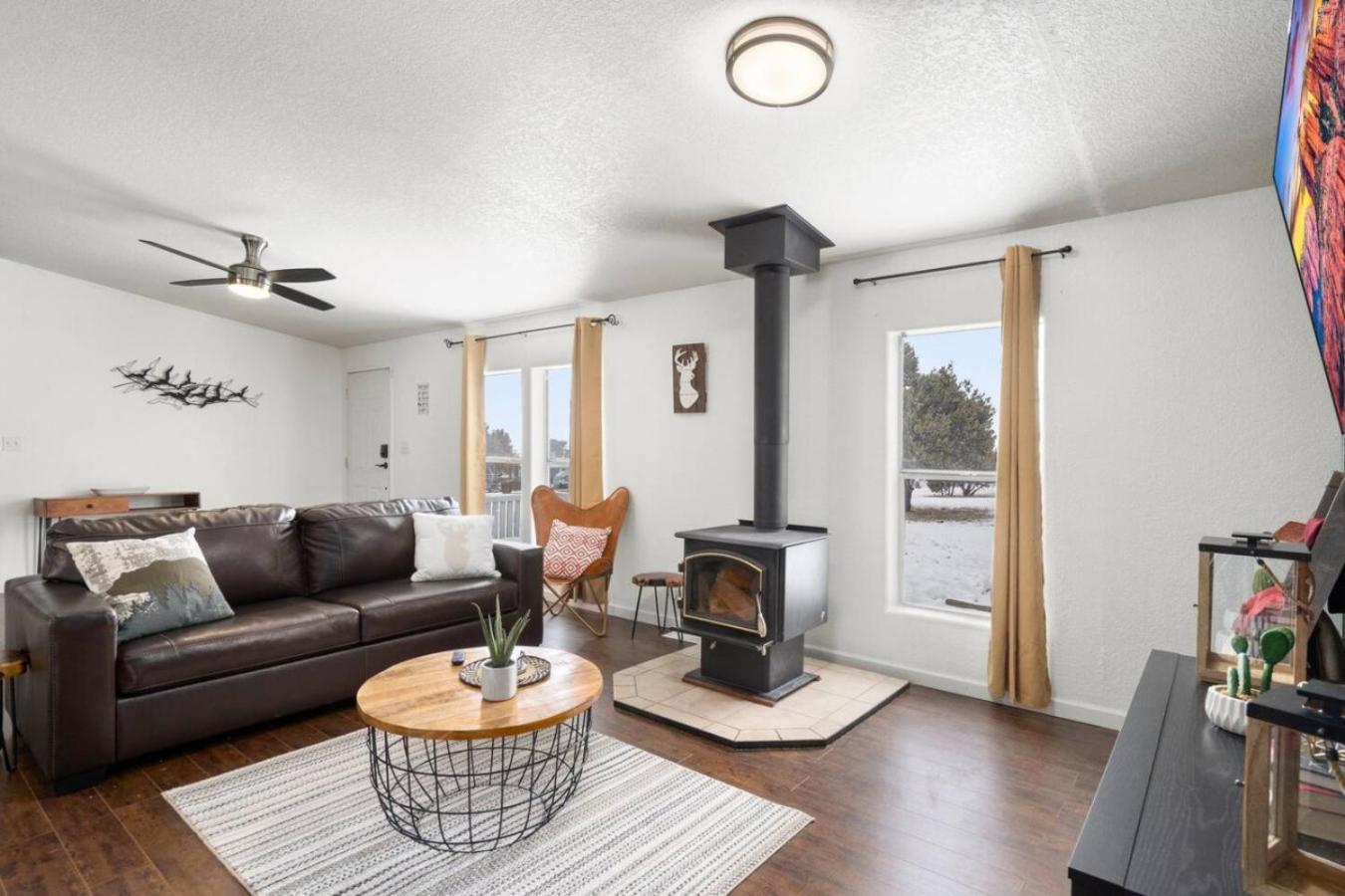 Four-Bedroom Holiday Home. This holiday homes standout feature is the fireplace. This spacious holiday home features 4 bedrooms, a kitchen and 2 bathrooms with a shower. Guests can use either the kitchen or the barbecue to prepare their meals. This holiday home has a washing machine, tumble dryer, a TV and a patio. The unit has 4 beds.