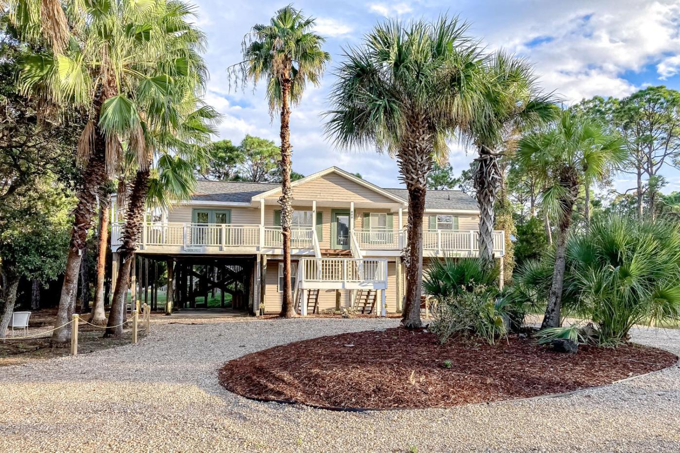 Situated in St. George Island in the Florida region, Sunny home with large deck firepit boat parking W&D & AC - easy beach access has a patio. Free WiFi is provided throughout the property.