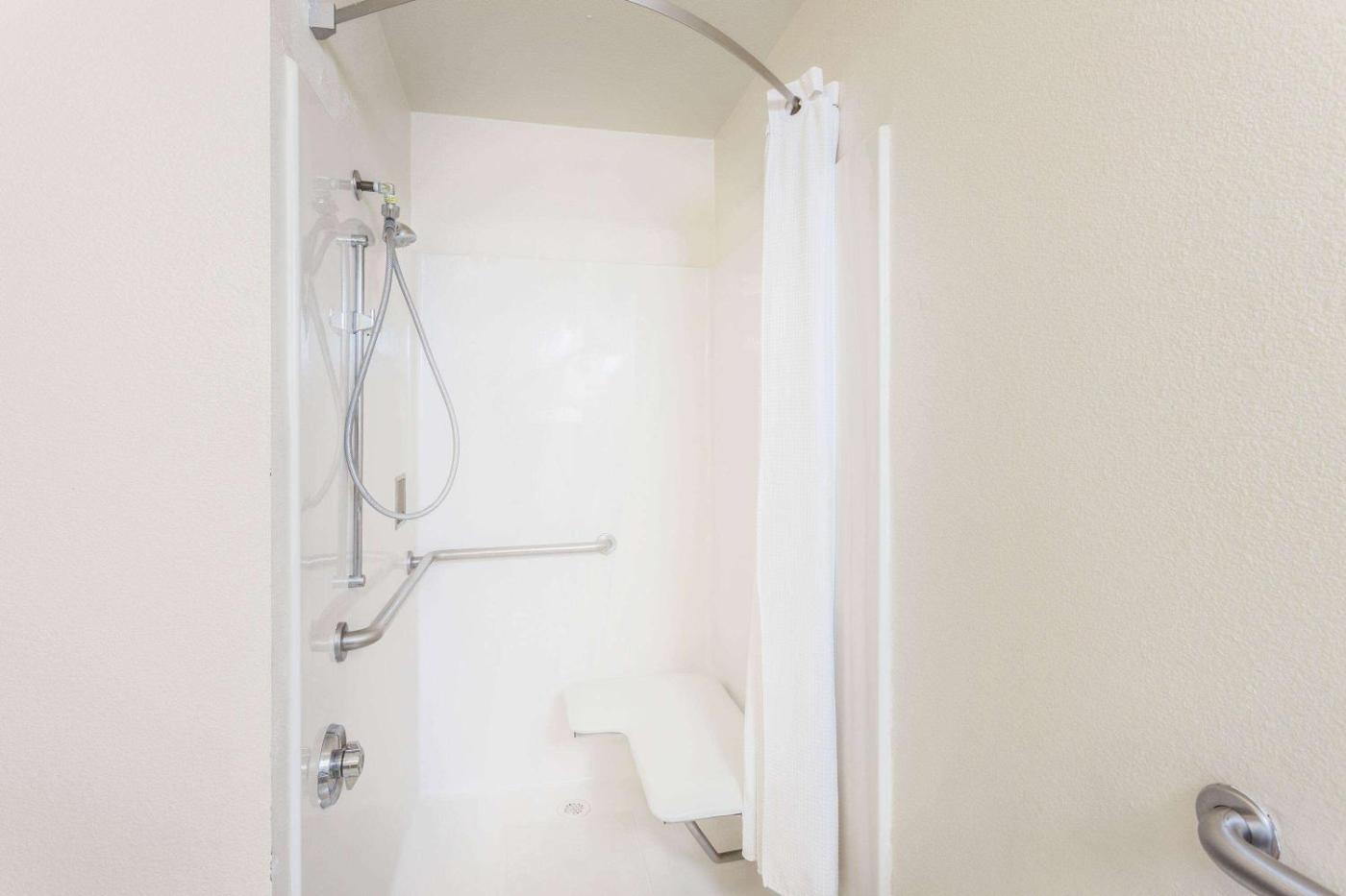 King Room with Roll-In Shower - Mobility AccessNon-Smoking. Providing free toiletries, this double room includes a private bathroom with a walk-in shower and a hairdryer. This double room features air conditioning, a tiled floor and a TV with cable channels. The unit offers 1 bed. ;